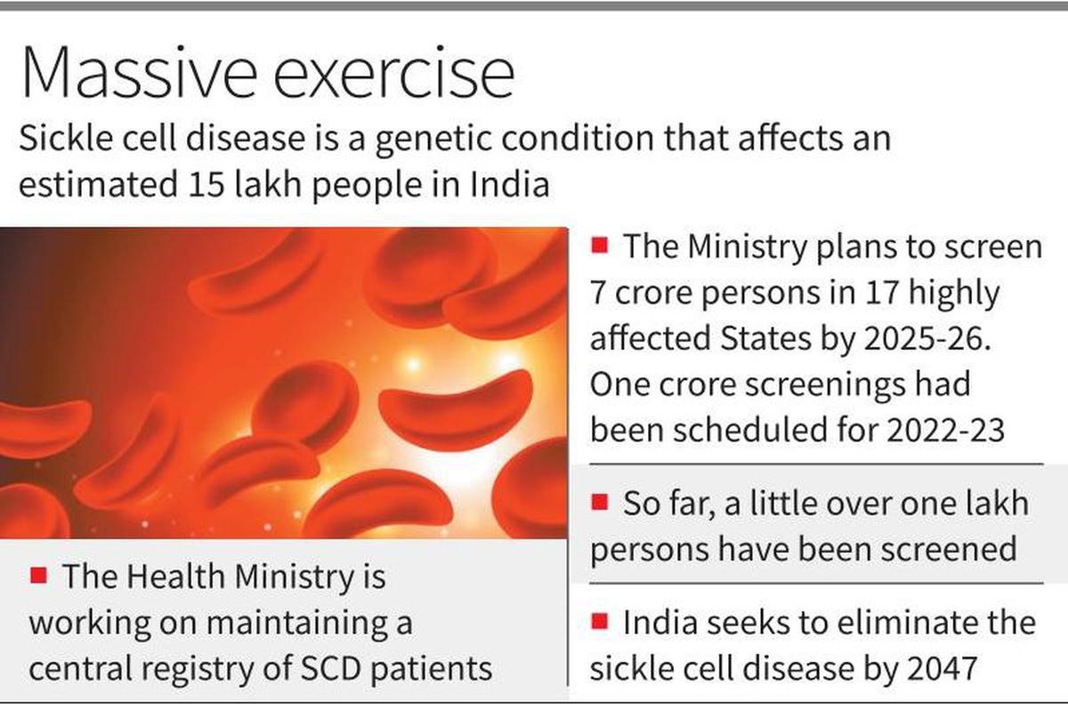 With barely two weeks left in the fiscal year, the Health Ministry has completed a miniscule 1% of its ambitious target to scan one crore people for sickle cell disease in 2022-23. The Ministry is starkly behind schedule, having screened just a little over one lakh people this year, according to official data accessed by The Hindu from the National Health Mission’s portal for sickle cell disease.