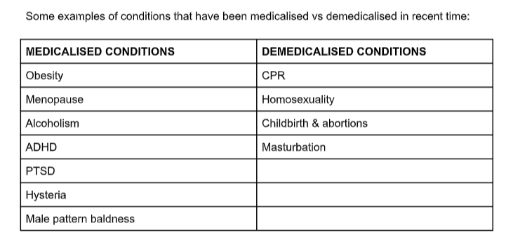 condition is controlled by chance events or luck, we lose control over it. But if a condition is medically related, it opens the way for medical research, study and developments, which ultimately improves the condition. Another benefit of this medicalisation has been the de-stigmatisation of various conditions in the society, for example, a hysterical woman is no longer a witch in the eyes of the society.