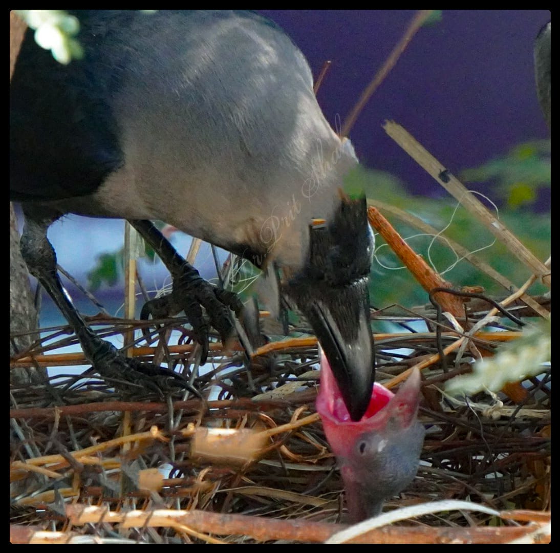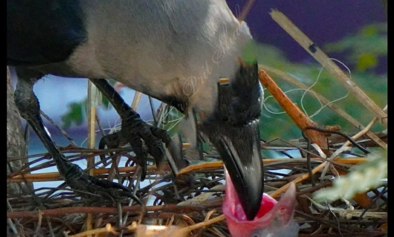 The Photo of the Month for June is that of a mother crow feeding her child.