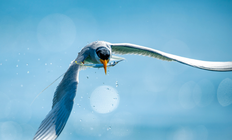 The River Tern Sterna aurantia (J.E. Gray, 1831), on its morning fish hunt. Image from Western Ghats of Kerala.
