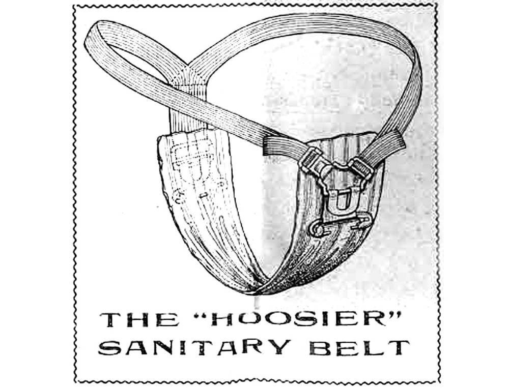 From the late 1800 to until 1920s this Hoosier Sanitary Belt was used and women used absorbent cloth on this.