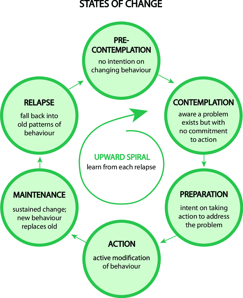 - Action: Patient stops the habit and maintains early abstinence. Significant efforts have to be made to prevent withdrawal symptoms at this stage.