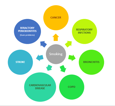Apart from the direct effects on the body, smoking acts as a major risk factor in worsening of pre-existing systemic conditions.